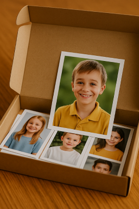 Η τελική παράδοση πραγματοποιείται εντός 30 ημερών από την ημέρα της φωτογράφισης, με ασφάλεια και συνέπεια. Τα προϊόντα παραδίδονται απευθείας στο σχολείο, έτοιμα να δοθούν στους γονείς.